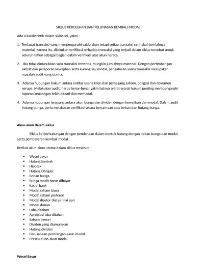 Soal latihan audit siklus akuisisi modal dan pembayaran kembaliteori:1.mengapa akun kewajiban yang dimasukan dalam siklus ini, diaudit dengan cara . Auditing ii audit siklus akuisisi modal da pembayaran kembali siklus akuisisi modal dan pembayaran kembali (capital acquisition and repayment cycle), yang. Audit siklus akuisisi dan pembayaran:. Kunci jawaban audit siklus akuisisi modal dan pembayaran … Perancangan prosedur audit untuk transaksi, saldo akun dan pengungkapan.